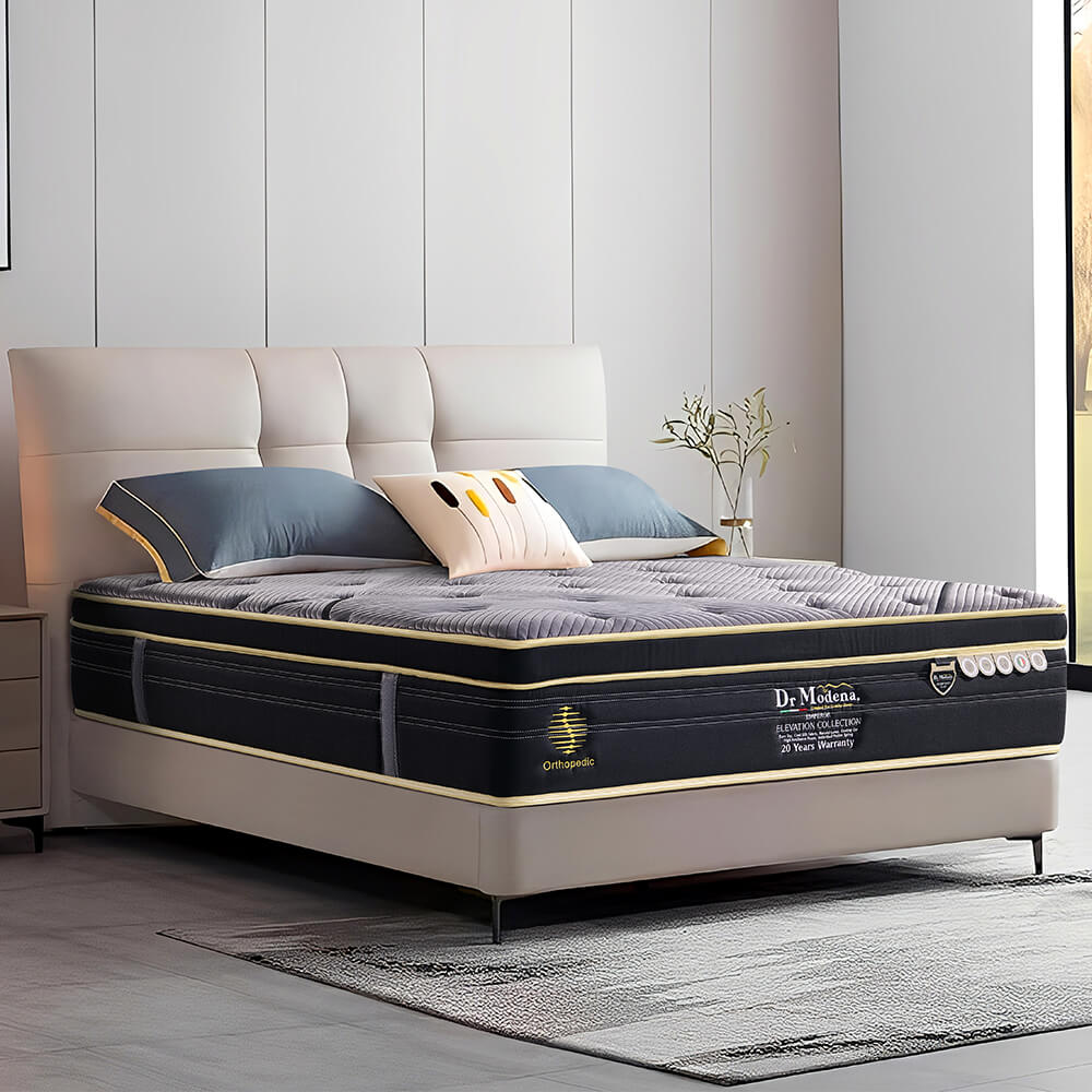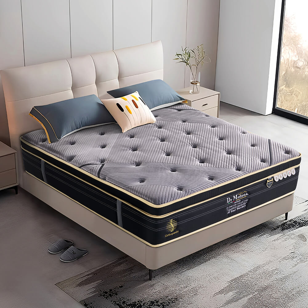 The Dr Modena Emperor Cooling Graphene Mattress combines advanced sleep engineering with innovative cooling technology to deliver exceptional comfort and support, featuring a 5-zone individually pocketed spring system that adapts to your body’s contours for targeted pressure relief and balanced spinal alignment, while breathable graphene-enhanced cooling fabric and comfort layers help dissipate heat and maintain a fresh sleep surface throughout the night, making it ideal for those who want both temperature regulation and luxurious ergonomic support in one premium mattress.