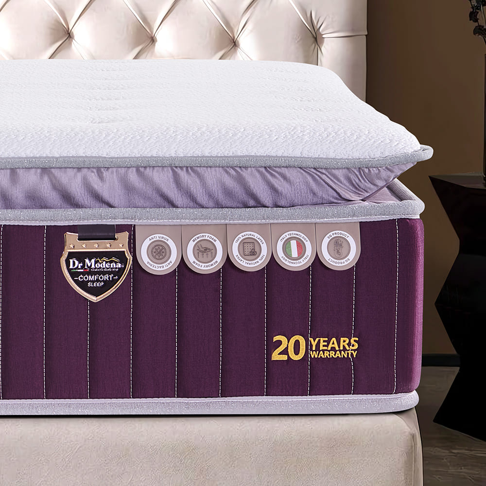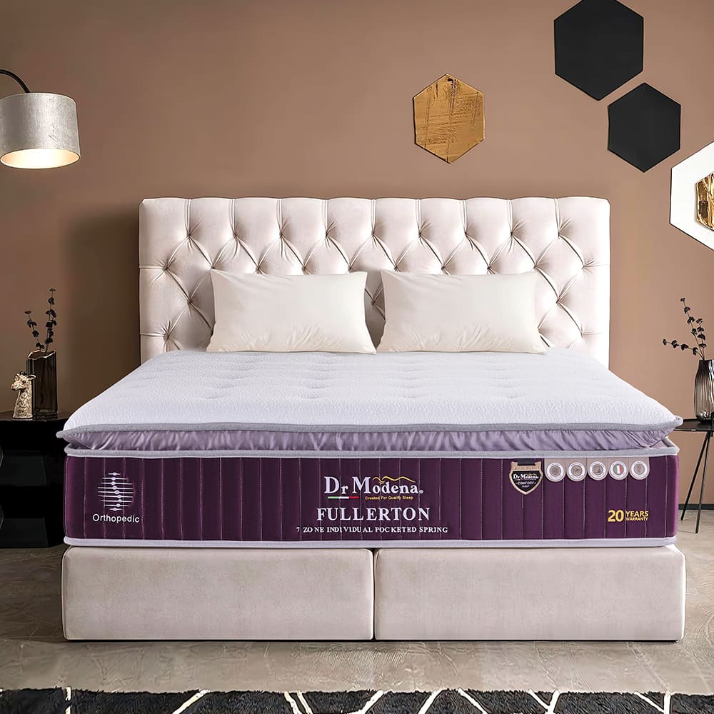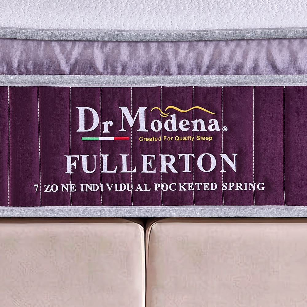 The Dr Modena Fullerton is an elite 7-zone pocketed spring mattress designed for sleepers who demand both exquisite comfort and precise support. With its finely tuned zoned structure, plush top layers, and resilient build, it delivers a luxurious sleeping experience that pampers while protecting your posture. Whether you sleep on your back, side, or shift positions through. the night, this mattress adapts to your body, helping you wake up refreshed, aligned, and free from aches